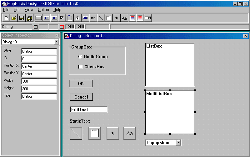 MapBasic Designer is a visual dialog editor for the MapBasic programmer.